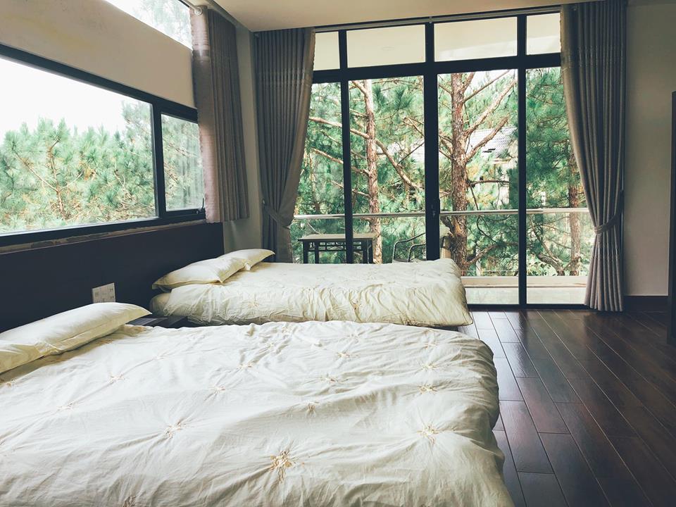 Thiết kế homestay tinh tế cùng hệ thống phòng đa dạng từ phòng đơn, phòng đôi đến phòng tập thể và tất cả đều có view hường ra rừng thông rộng lớn. bạn không những có thể đến đây với người thương, gia đình mà còn có thể cùng 500 anh em trải nghiệm.